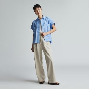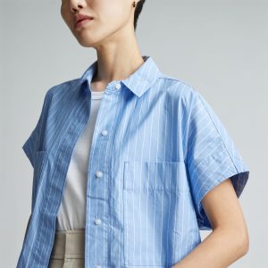 The Poplin Short-Sleeve Box Shirt features a notched collar. a clean button front. relaxed short sleeves. utility-inspired patch pockets. and a boxy shape. Wear it tucked into any of our denim for an instantly cool look.Cotton poplin is densely woven. making it both durable and breathable. also giving it a crisp. cool feel.