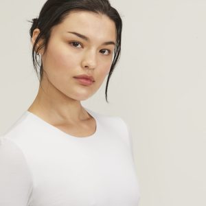 The Short-Sleeve Crew Neck Bodysuit | White | Thong