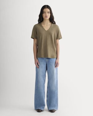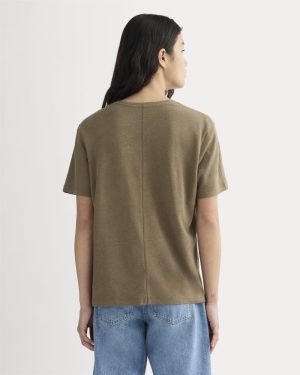 The Slouchy V-Neck Tee in Cotton Linen | Deep Taupe