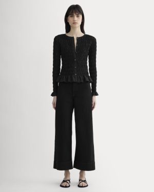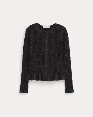 Lighter than your regular cardi. it wears more like a long-sleeve slim fit shirt. Smocked. with button closures. it features ruching along the hem to give it a dressier edge. Wear it solo buttoned up. or throw on over a tee. it’s a must for breezier days and nights.