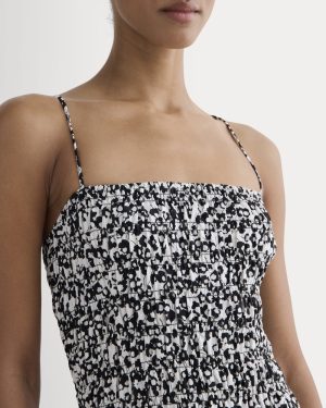The Smocked Column Dress | Bone / Black Floral