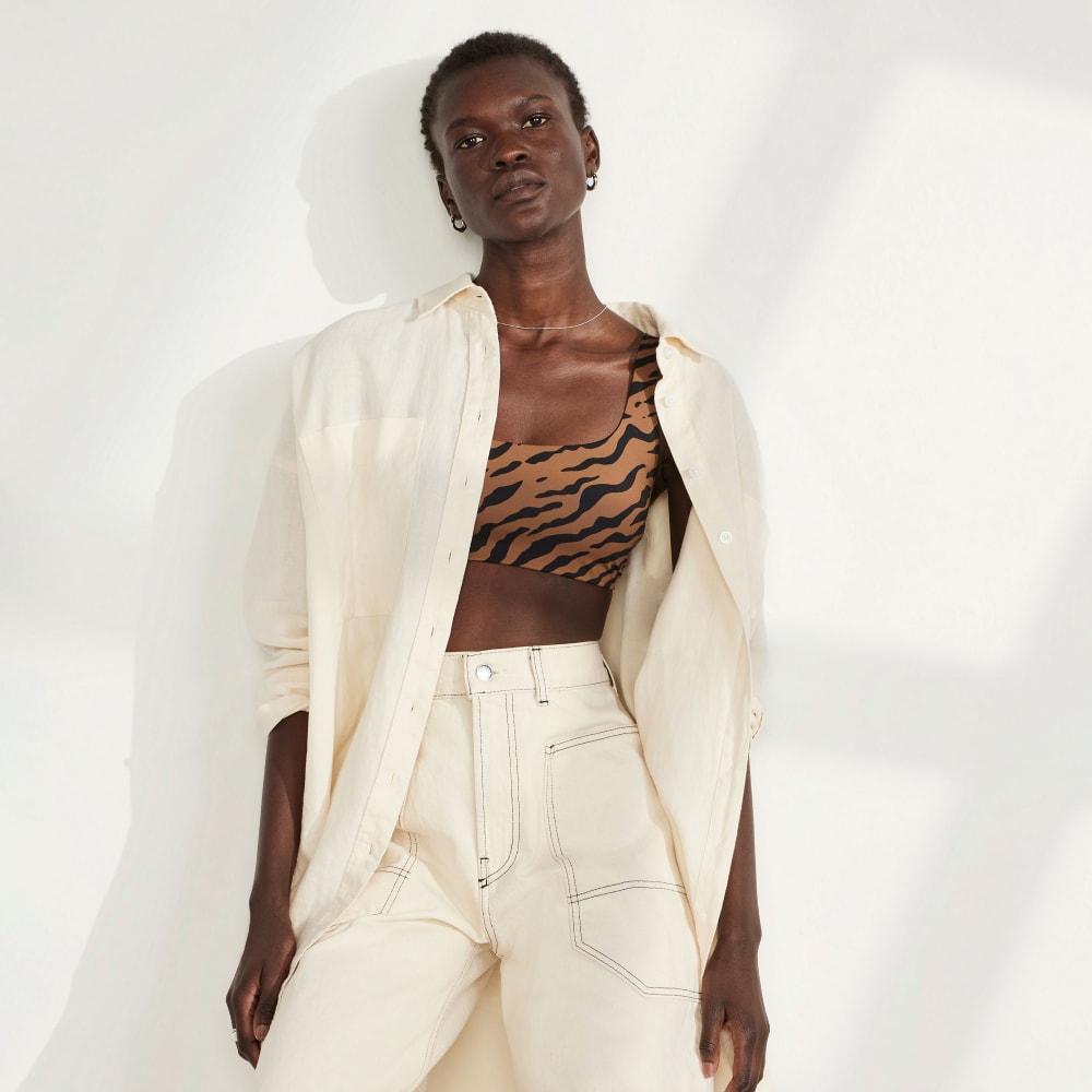 The Square-Neck Bikini Top features a modern square neckline. removable pads. and an adjustable band and straps for an easy fit. Plus. it’s made of fully lined Italian fabric with technical quick-drying and fade-resistant properties. which makes it versatile enough for every summer activity. Even better? This style was fit-tested on 112 different women to ensure that it feels comfortable. looks flattering. and stays put—no matter how you move. Each suit in our Swim collection is made with 82% of ECONYL® yarn. a 100% regenerated nylon fiber made from nylon waste otherwise polluting the Earth. like fishing nets. fabric scraps. carpet flooring. and industrial plastic rescued from all over the world. Learn about our No New Plastic initiative .