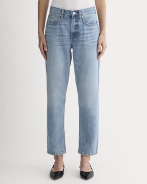 Featuring a classic straight leg and an easy ankle length. the Super-Soft Relaxed Jean has a slouchy look with a perfectly broken-in feel. Plus. it’s made of non-stretch 10 oz organic denim that’s loosely woven with less yarn per inch. so it has an airy softness that typically comes from decades of wear.