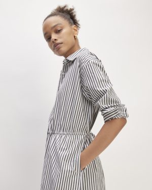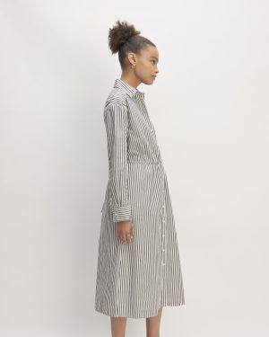 The Supima® Cotton Midi Shirt Dress | Optic White / Black