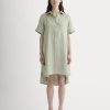 This piece features a removable belt. front button closure. midi length. crisp texture. collar. and on-seam pockets. in Supima® cotton.