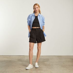 Made from a blend of ultra-breathable linen and organic cotton. The Tourist Short features our signature high waist. a flattering pleat design. and our favorite feature yet— extra pockets.