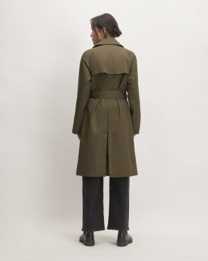 Our Trench Coat is back and better than ever. Our most classic trench silhouette. it stays true to the trench playbook. Double-breasted with button closures and a belt. it features raglan sleeves. a front storm flap detail—with a full back storm flap. slanted welt pockets. and a back vent with button tab detail. Fully lined. it’s made with 100% cotton on the coat itself and 100% recycled polyester in the body lining. An essential you’ll reach for every year.