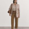 This piece features a high-rise silhouette with a statement curve leg that hits right at the ankle. with front angled pockets. two back patch pockets. and made of organic. lightweight cotton with a touch of stretch for a body-hugging feel.
