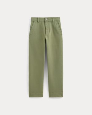 This piece features a waist-nipping high-rise. relaxed. straight silhouette that hits right at the ankle. front angled pockets. and two back patch pockets in our organic cotton twill fabric.