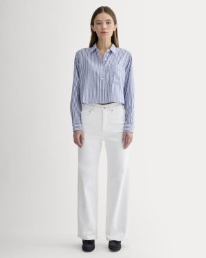 Made from high-twist. 100% cotton yarn in a soft twill weave. the Way-Short Shirt in Silky Cotton features a point collar. a clean button front. one patch pocket. and a cropped shape that pairs perfectly with high-waisted bottoms. Wear it with jeans for a classic look. or pair it with something stretchy for an easy (yet super-flattering) outfit.