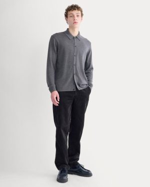 Unlike anything you have in your closet. This button-down is knit from ultrafine Merino wool with a soft. warm handfeel that reads polished but feels relaxed. The full placket and collar give it structure. while the sweater-weight yarn makes it ideal for layering or wearing solo—buttoned up for dinner. open over a tee for off-duty. A versatile upgrade built for cooler days.