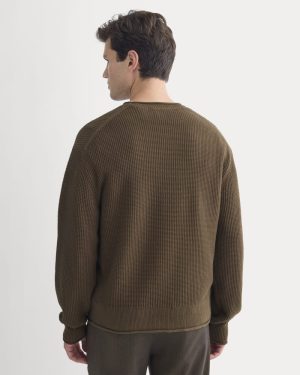 Classic. but not basic. This organic cotton crew brings a rugged edge to your rotation with a heritage waffle stitch and rolled edges at the collar. cuffs. and hem. The texture does the talking—easy to throw on. solid on its own. or layered up when the temps drop.